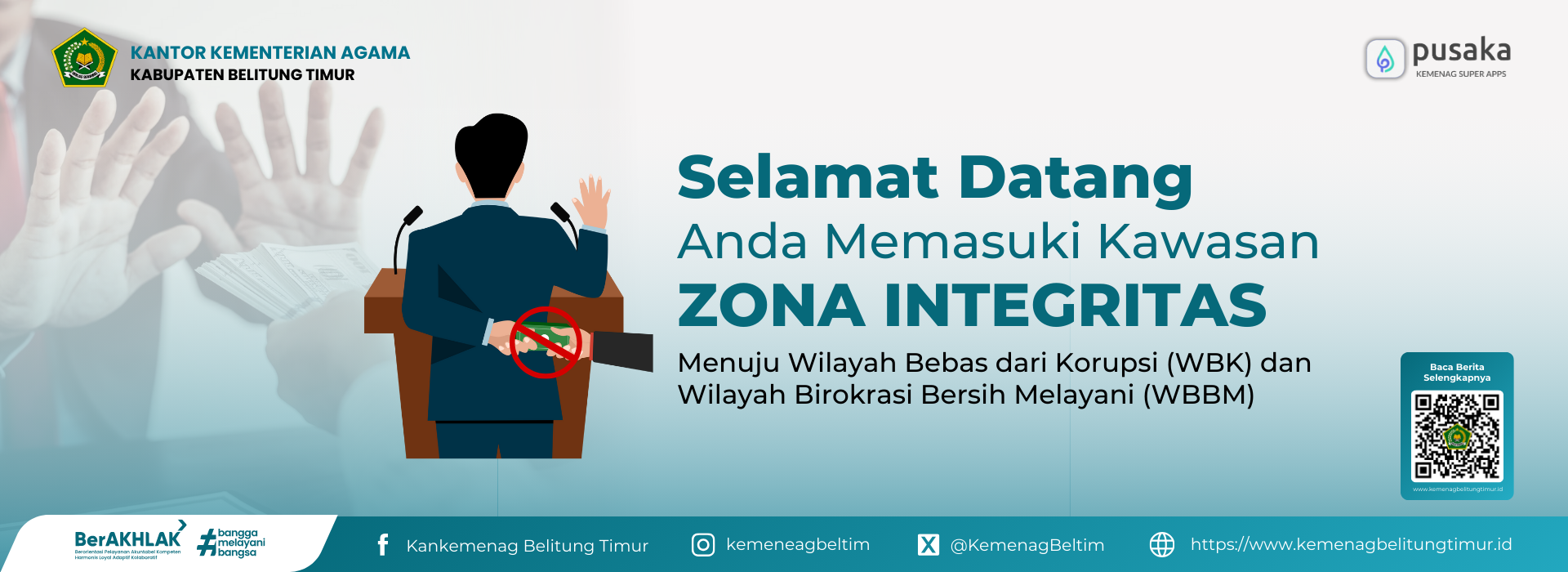 BERIMAN merupakan identitas dan komitmen Kantor Kementerian Agama Kabupaten Belitung Timur dalam mewujudkan pelayanan keagamaan yang profesional, adil, dan berorientasi pada kemaslahatan umat. BERIMAN dimaknai sebagai Berintegritas, Melayani, Amanah, dan Non Diskriminatif yang menjadi nilai inti dalam setiap pelaksanaan tugas dan fungsi pelayanan kepada masyarakat.