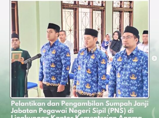 Belitung Timur – Pelantikan dan pengambilan sumpah atau janji jabatan PNS formasi tahun 2021 di lingkungan Kantor Kementerian Agama Kabupaten Belitung Timur yang dilakukan secara …