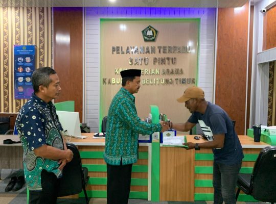 Manggar (Humas Kemenag Belitung Timur)-Kantor Kementerian Agama Kabupaten Belitung Timur (Kemenag Beltim) menyerahkan Surat Keputusan (SK) Pensiunan Duda kepada suami almarhumah Ismawiyah, Joly pada Rabu …