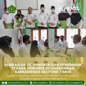 Berita PEMBAGIAN SK DAN PEMBINAAN TENAGA HONORER DI LINGKUNGAN KANKEMENAG BELITUNG TIMUR Baca Selengkapnya 27 Desember 2021 Tidak ada komentar