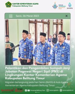 Berita PELANTIKAN DAN PENYERAHAN SK PNS DI LINGKUNGAN KEMENAG KABUPATEN BELITUNG TIMUR TAHUN 2023 Baca Selengkapnya 6 Maret 2023 Tidak ada komentar