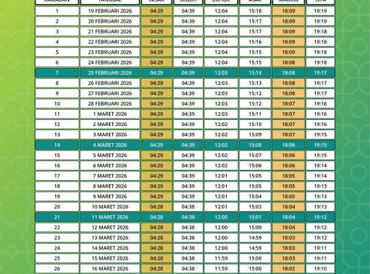 Jadwal Imsakiyah Ramadan 1447 H/2026 M Untuk Wilayah Kab. Belitung Timur dan Sekitarnya