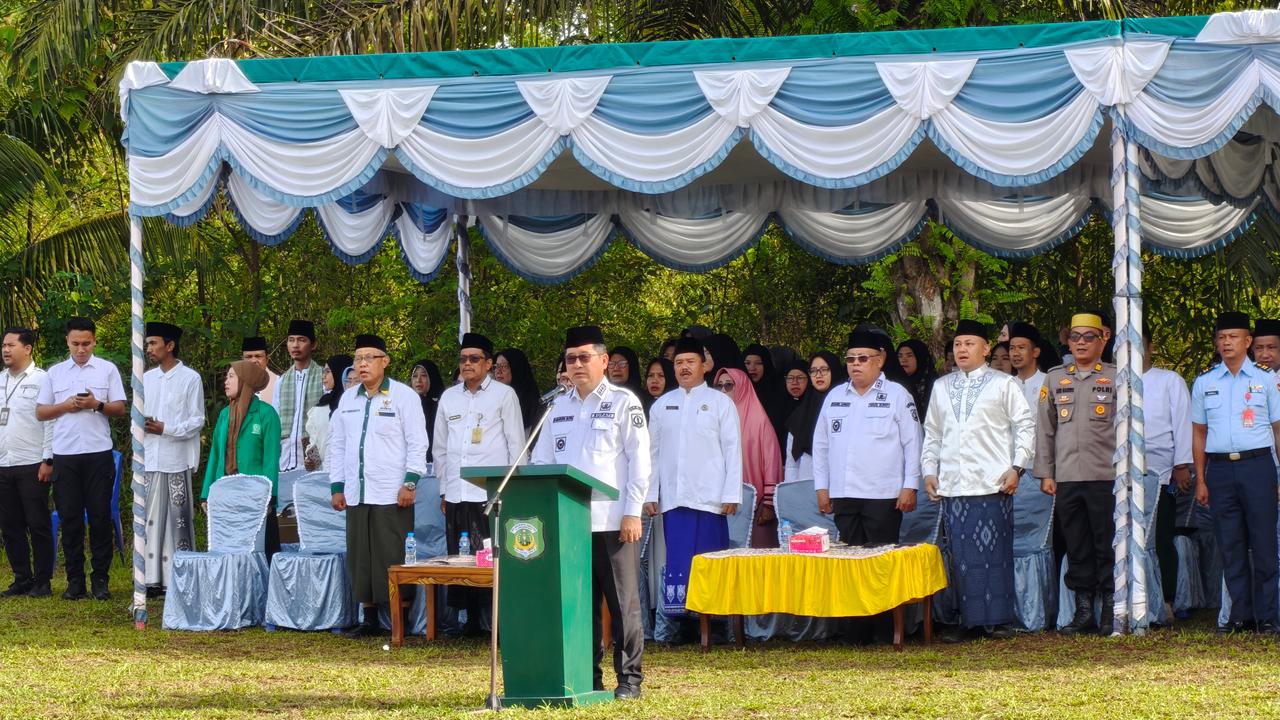 Berdiri sebagai Inspektur Upacara adalah Bupati Belitung Timur, Kamarudin Muten yang menyampaikan amanat dari Menteri Agama Republik Indonesia, Nasaruddin Umar.