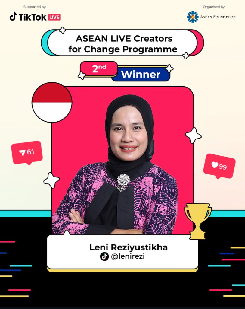 Selama enam bulan, Leni konsisten menghadirkan konten pelestarian bahasa daerah, mengangkat pentingnya menjaga bahasa ibu sebagai identitas budaya bangsa. Konsistensinya membuat ia mampu bersaing dengan 18 kreator dari berbagai negara ASEAN.