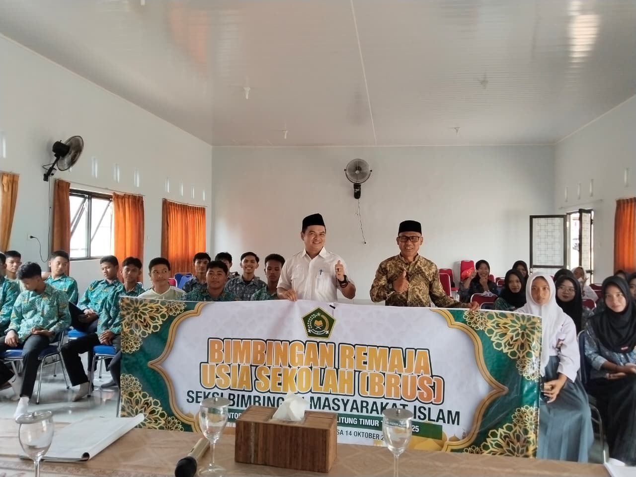 KELAPA KAMPIT—Seksi Bimbingan Masyarakat Islam (Bimas Islam) Kementerian Agama (Kemenag) Kabupaten Belitung Timur kembali menggelar kegiatan Bimbingan Remaja Usia Sekolah (BRUS). Kali ini, kegiatan yang berfokus pada edukasi pencegahan pernikahan usia dini tersebut dilaksanakan di SMA Negeri 1 Kelapa Kampit pada Selasa, 14 Oktober 2025.