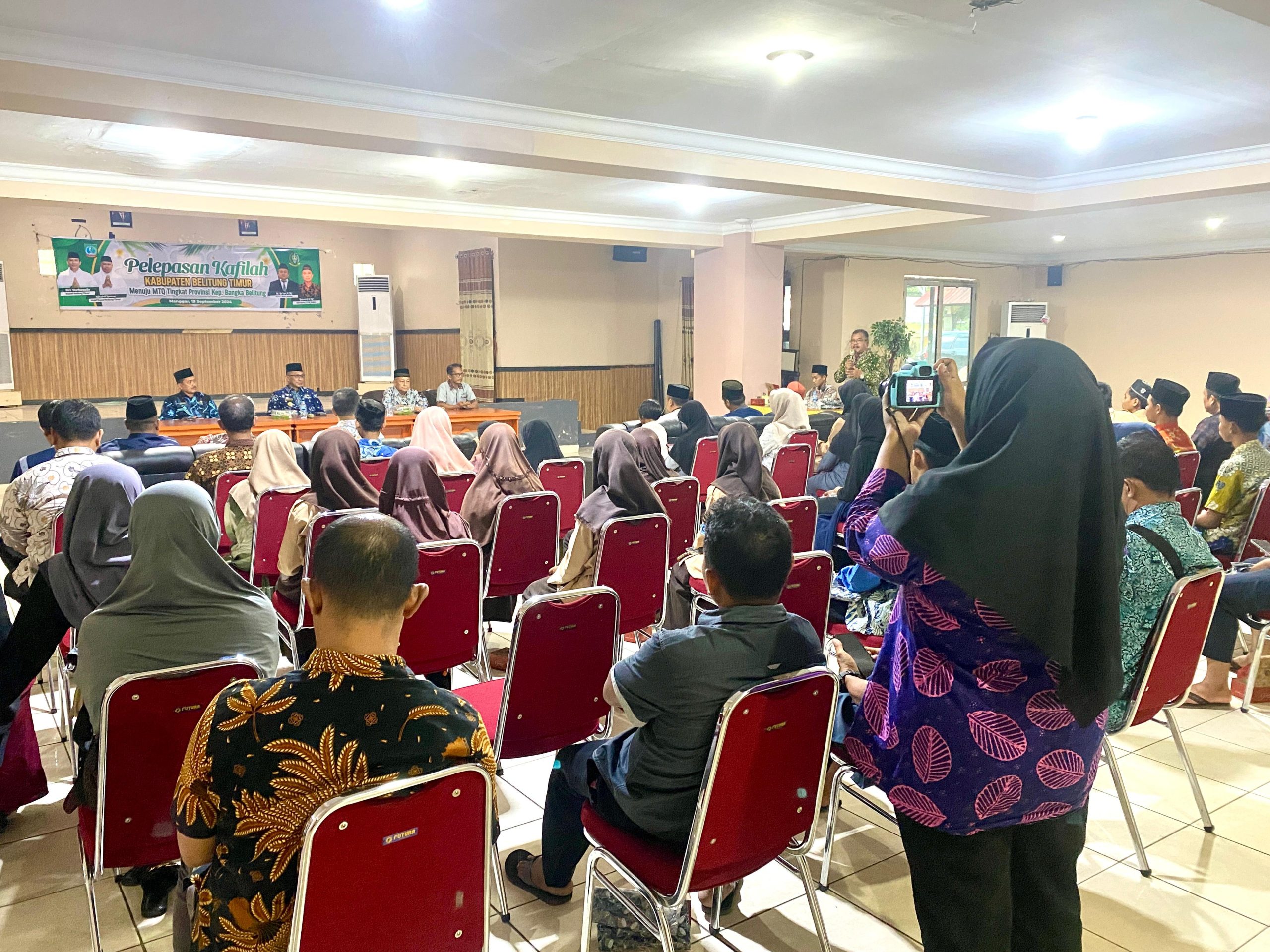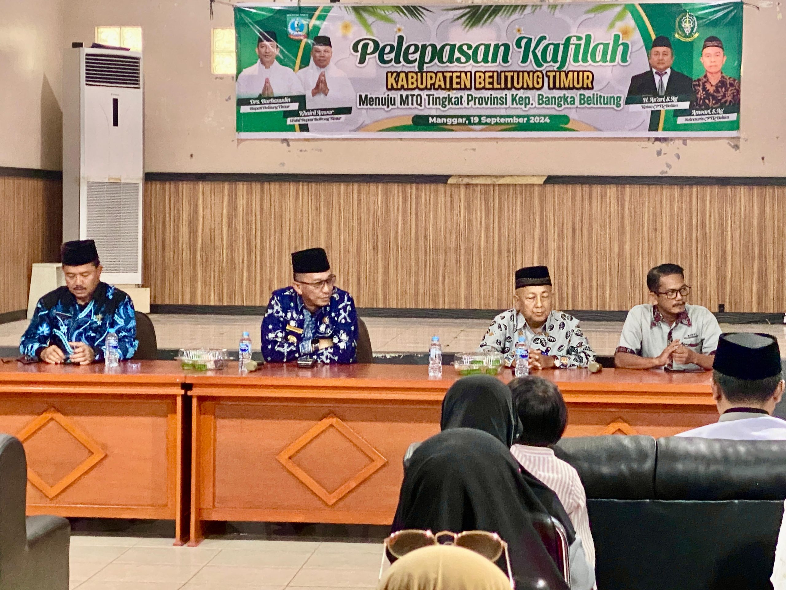 Bupati Belitung Timur Burhanudin secara resmi melepas Kafilah Kabupaten Belitung Timur yang akan berlomba ke tingkat MTQ Provinsi Kepulauan Bangka Belitung pada awal Oktober 2024. Pada kegiatan pelepasan tersebut dalam sambutannya Bupati berharap agar seluruh kafilah khususnya peserta dapat berikhtiar baik menjaga kesehatannya maupun berupaya meningkatkan prestasi.