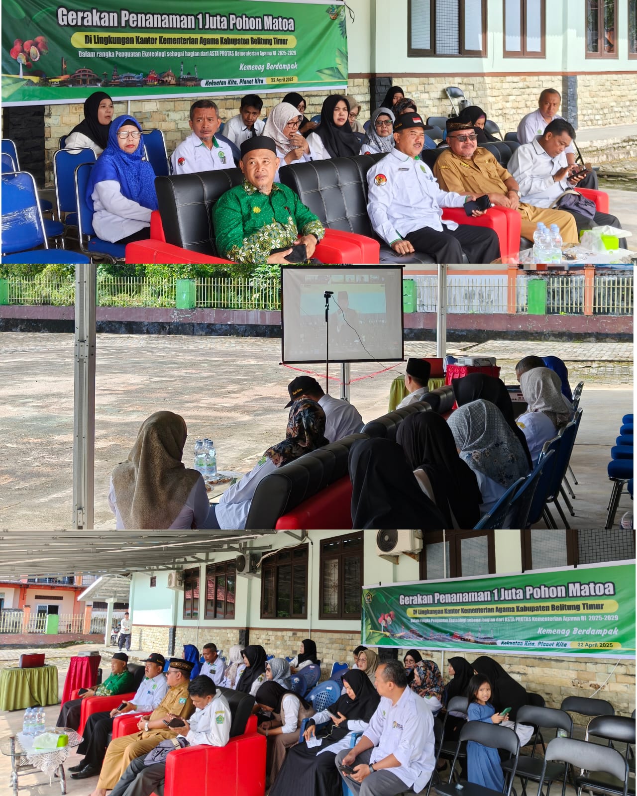 Manggar (Humas) – Kepala Kantor Kementerian Agama Kabupaten Belitung Timur, Drs. H. Suparhun, M.A., menanam pohon matoa dalam rangka mensukseskan gerakan tanam sejuta pohon matoa dalam rangka memperingati hari bumi yang berlangsung pada tanggal 22 April 2025 di halaman miniatur ka’bah Kemenag Belitung Timur. Launching Gerakan Penanaman 1 Juta Pohon Matoa ini berangsung serentak di seluruh Indonesia yang terpusat di Kampus UIII yang diikuti secara daring.