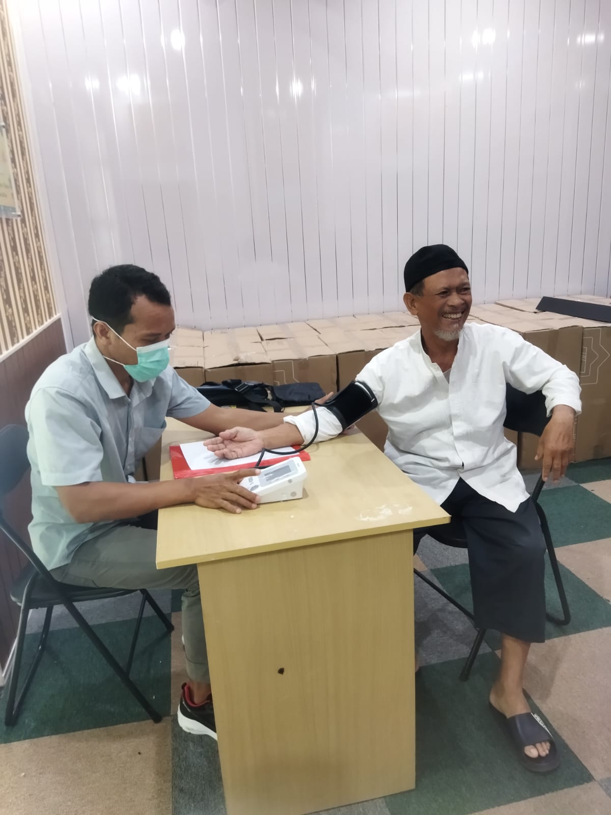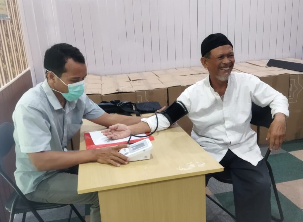 Sebelum menerima suntikan vaksin, seluruh jamaah haji diwajibkan menjalani pemeriksaan kesehatan awal, termasuk pengukuran tekanan darah. Hanya mereka yang dinyatakan laik secara medis yang langsung mendapatkan injeksi vaksin.
