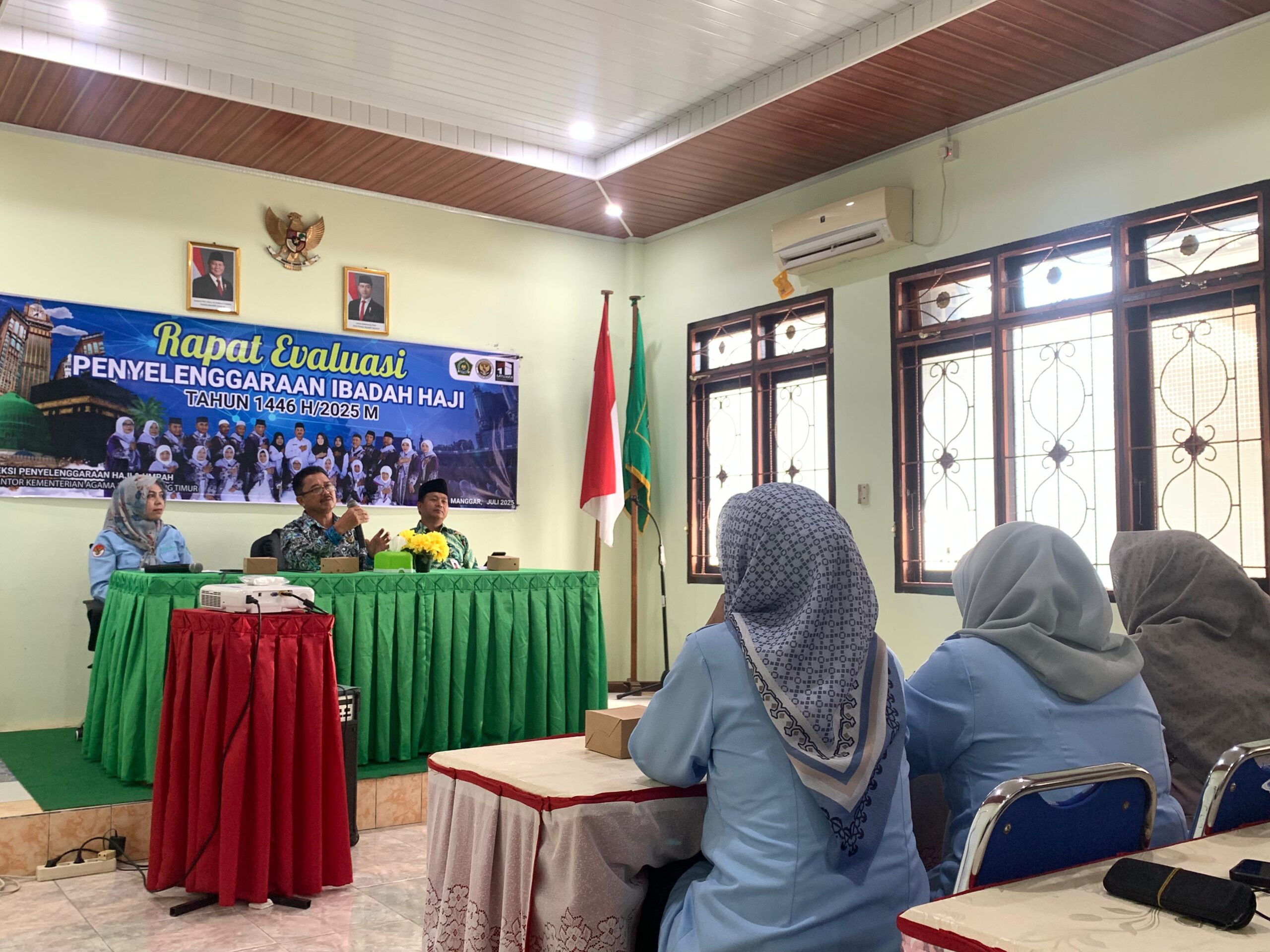 Manggar (Humas Kemenag Belitung Timur)-Kantor Kementerian Agama (Kemenag) Kabupaten Belitung Timur (Beltim) menyelenggarakan Rapat Evaluasi Penyelenggaraan Ibadah Haji Tahun 1446 Hijriah/2025 Masehi di Aula Kemenag Beltim pada Rabu, 30 Juli 2025.